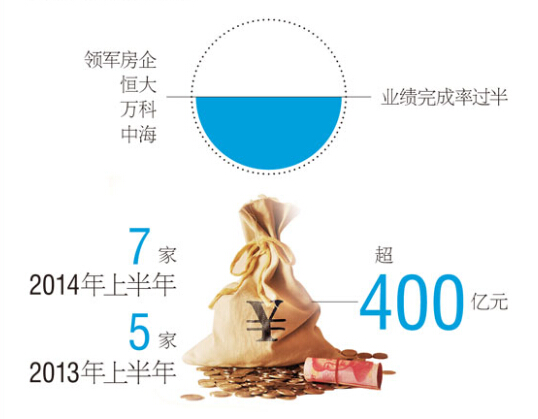 龙头万科达成销售额1018亿元,在上半年就突破千亿元。企业销售金额同比增长22%,目标完成率51%。依赖品牌品质、刚需定位和大幅降价,上半年万科业绩继续攀升。今年以来,万科聚焦互联网思维进行战略转型,在项目运营方式和管理组织架构方面进行了大胆尝试,积极引入事业合伙人制度、项目跟投、小股操盘,并与百度建立战略合作,开启了商业地产运营大数据智能平台。