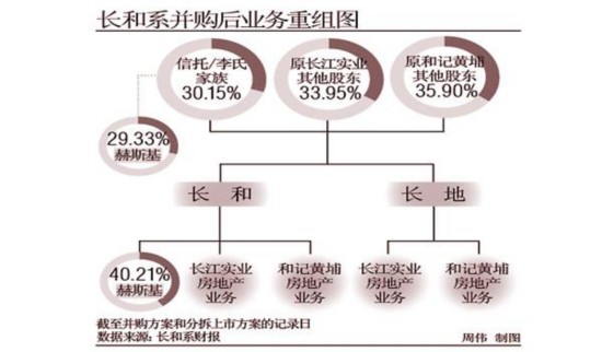 一系列合并重组完成后,新公司长江实业地产有限公司(以下简称为“长地”)将成为香港最大的上市房地产公司之一,持有长江实业集团及和记黄埔集团在香港、中国内地及海外的房地产业务。