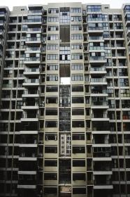 在湘水熙园小区,12栋共22层,单层住户外墙有窗户,墙外是一块台子,两个单元楼中间位置有架空,其中已有五层被人用铝合金窗户封闭。