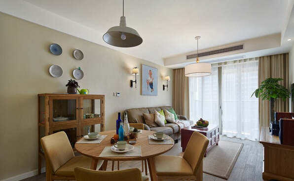 即喜欢美式,又喜欢无印良品的日式,但是不想在硬装里花太多的钱,所以整体的硬装修,选择了简单。木头家具与棉麻质地堪称绝配,浓浓的阳光味道,整间公寓艺术气息十分浓郁。